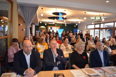 Po přestávce následoval blok věnovaný meziobecní spolupráci. Účastníky pozdravila radní Karlovarského kraje a starostka obce Prameny Michala Málková, která představila dotační programy kraje zaměřené například na podporu venkovských obchodů, pohostinství či místních akčních skupin.